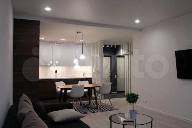 В квартире выполнен дизайнерский ремонт. Общая площадь составляет 75 м2, в квартире 2 изолированные комнаты, кухня совмещённая с гостиной, гардеробная и совмещённый санузел. Квартира полностью готова для заселения и для Вашего удобства укомплектована мебелью и техникой (варочная поверхность, холодильник, духовка, СВЧ, посудомоечная машина). В квартире множество точечных светильников. Проведен интернет. Утюг с гладильной доской, LCD телевизор в гостиной и спальне.