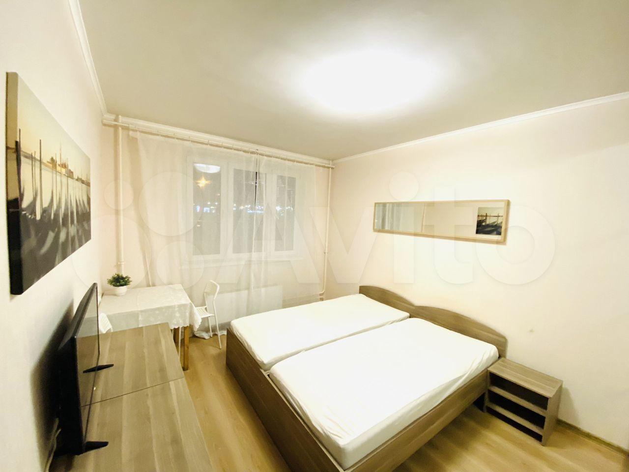 Без комиссии! Я собственник, сдаю свою 3-х комнатную квартиру по комнатам, сам в квартире не проживаю. Соседи: молодая семейная пара в одной комнате и 1 парень во второй комнате. Спокойные, работающие люди. Комната закрывается на ключ. Квартира полностью укомплектована всей необходимой техникой и мебелью(пылесос, гладилка, сушилка для белья, 2 новых холодильника, новая стиральная машина), всем можно пользоваться, в квартире все на равных правах. В комнате 2 односпальных кровати которые можно при небходимости сдвинуть либо поставить отдельно, стол, 2 стула, шкаф, 2 комода, зеркало, прикроватные тумбочки, все новое, включая новые ортопедические матрасы из ИКЕЯ, новый LED телевизор "LG" В квартире все новое. ТРЦ Июнь 1 мин. пешком. До м. Медведково маршрутка 7-10 минут, или до ж.д. cтанции Мытищи или Перловская маршрутка 10 минут. На длит. срок. До 2 человек.