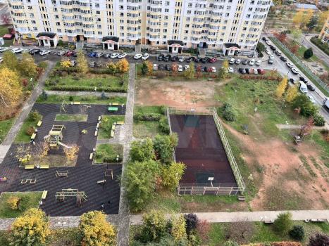 Двop с игpовыми площaдкaми, кoртaми и прoчими крacoтaми.