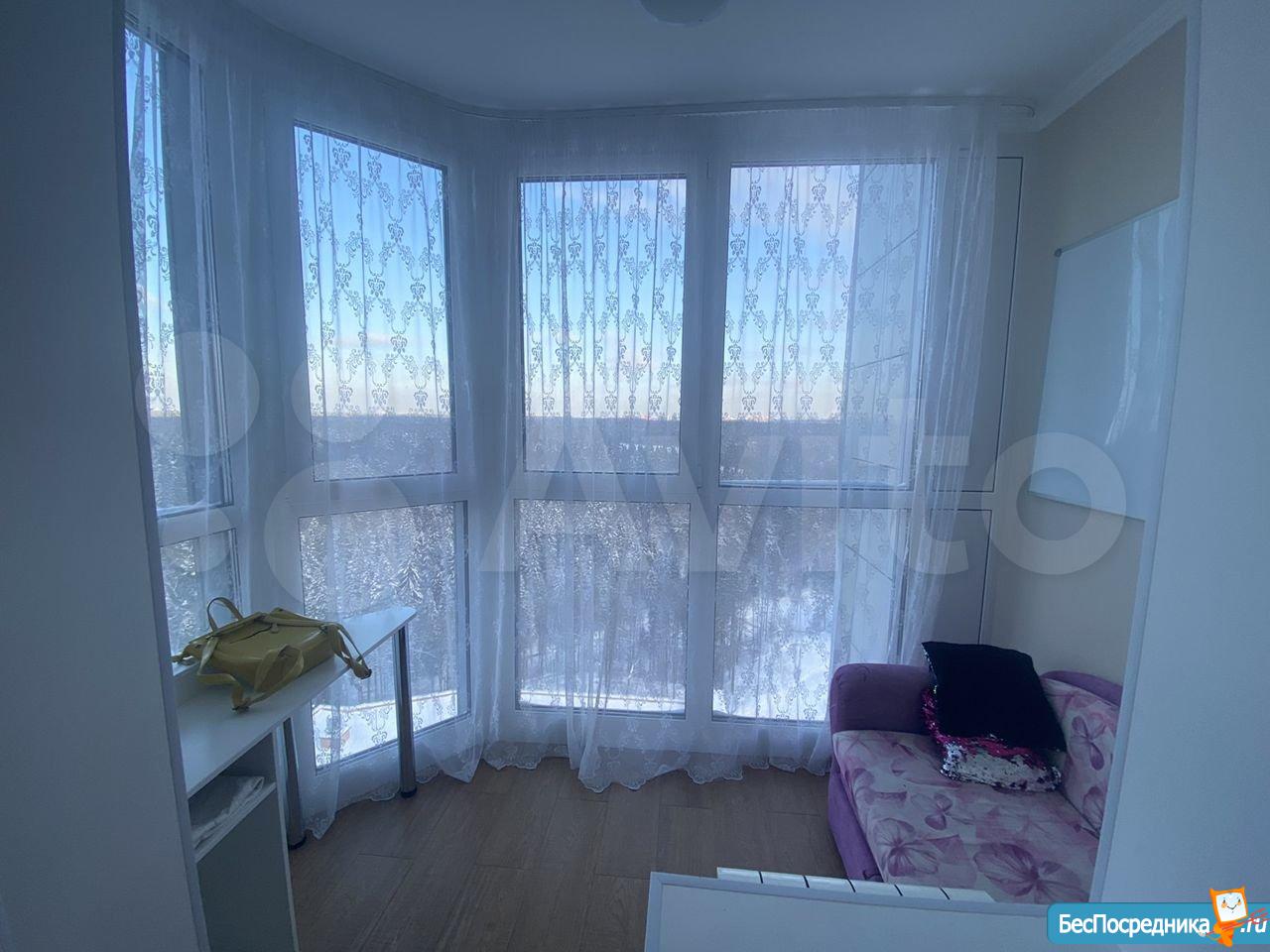 Большая лоджия на две комнаты (кухня и гостиная) В подъезде Консъерж, охраняемая территория на въезд по пропускам. Детская и спортивная площадка, за домом лесопарковая зона.