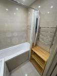 В квартире выполнен евро ремонт. Комнаты изолированные, что обеспечивает комфорт и приватность. В гостиной установлен кондиционер, а также имеется диван и шкафы для хранения вещей. В кухне современная бытовая техника: холодильник, плита и стиральная машина. Ванная комната совмещенная, оснащена душевой кабиной и ванной.
