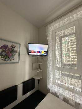 В квартире выполнен качественный евроремонт и есть все необходимое для комфортного проживания: в комнате удобный раскладной диван с механизмом «Аккордеон» с ортопедическим матрасом для комфортного ежедневного сна (спальное место 160*200), с ящиком для белья, гардеробный шкаф , smаrt ТV телевизор с wi-fi.