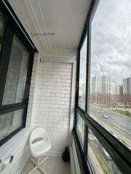 В прихожей вместительный шкаф-купе с большим зеркалом. В ванной комнате удобный шкаф-пенал с корзиной для белья. Большая лоджия с панорамным окном. Домофон, интернет.