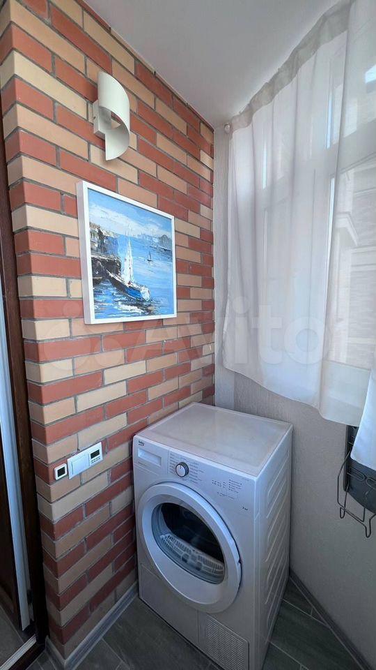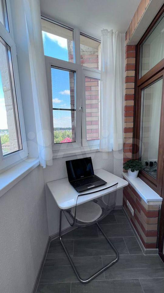 Балкон утеплён, стоят двойные стеклопакеты, установлен теплый пол, освещение, розетки. На балконе стоит сушильная машина Веkо и установлен складной стол, который можно использовать как рабочее место.