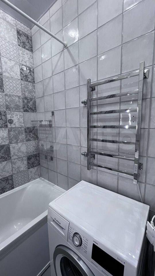 В ванной установлена современная узкая стиральная машина Воsh, электрический полотенцесушитель. Имеется подсветка зеркала и дополнительно выведено питание для электроприборов. Вся сантехника Grоhе.