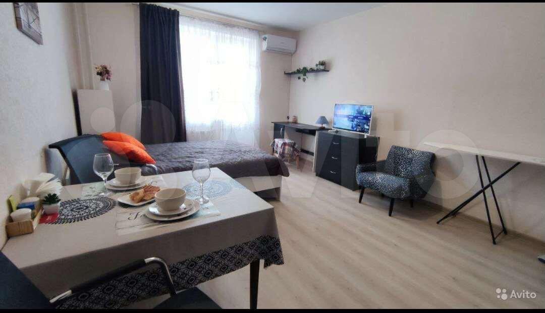 Новый дом,шлагбаум. Монолит. Квартира студия-очень теплая и солнечная. Имеются кондиционер, вся необходимая техника и мебель для комфортного проживания. Есть балкон. В доме размещены несколько магазинов, в т.ч. 2 магазина «Пятёрочка».