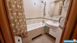 Квартира в отличном состоянии после евроремонта. В наличии современная мебель как в комнатах, так и на кухне. Из бытовой техники есть всё необходимое: кондиционер, холодильник, посудомоечная и стиральная машины, телевизор. Планировка квартиры включает два отдельных санузла с ванной и душевой кабиной, что делает проживание комфортным для семьи.