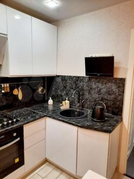 Кухня имеет современный и стильный кухонный гарнитур, всю необходимую кухонную технику: духовой шкаф, варочную панель, вытяжку, электро чайник, телевизор, холодильник, водный фильтр для питевой воды.
