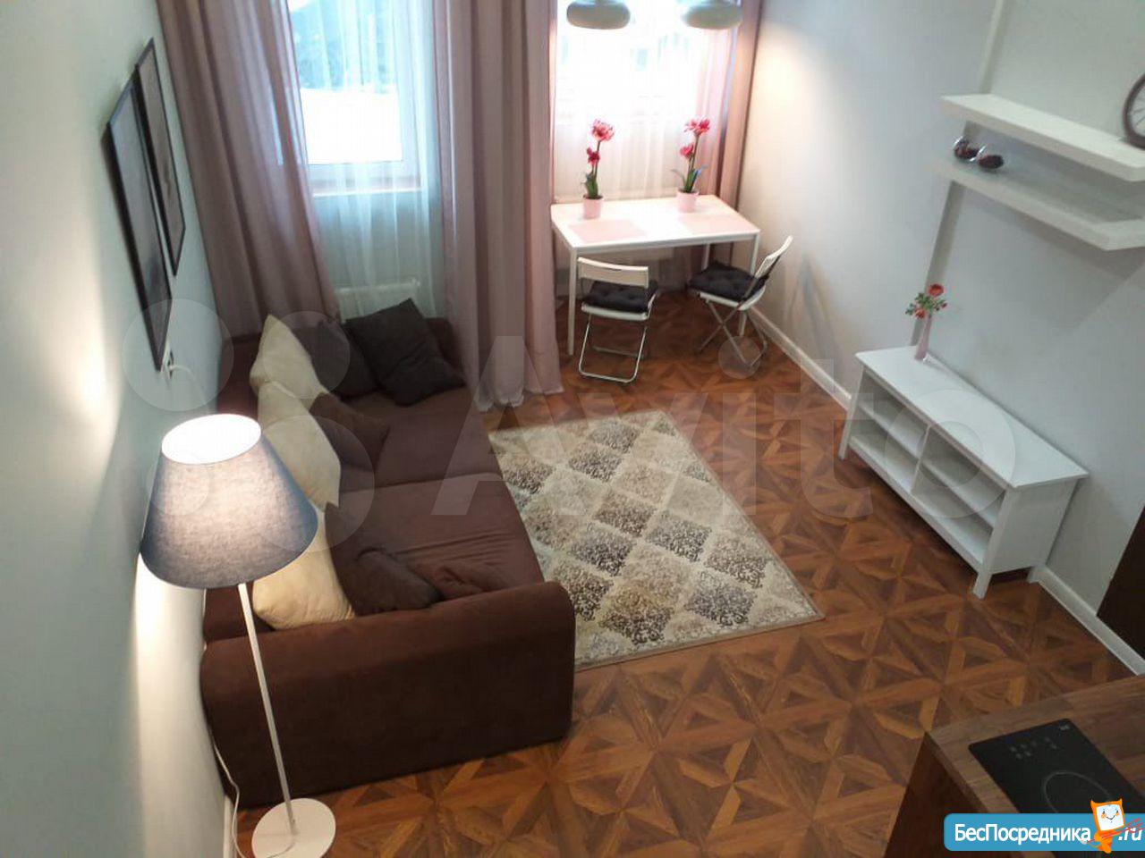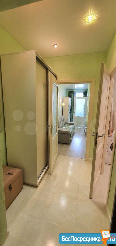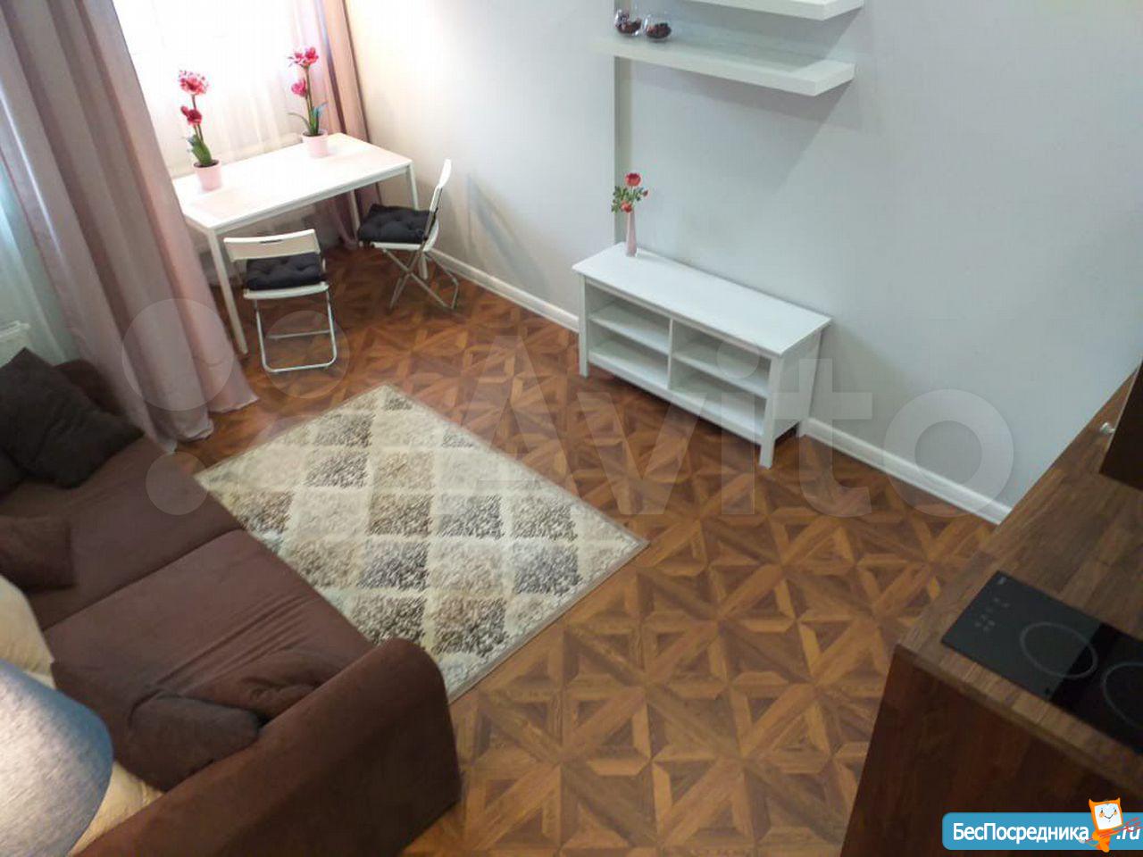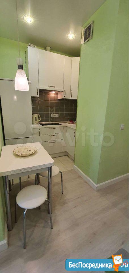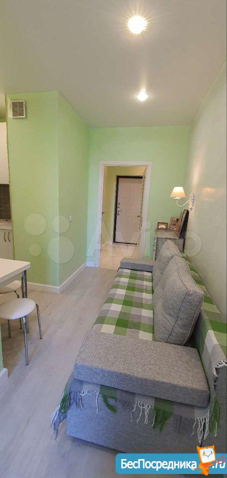 Светлая студия с ремонтом и всем необходимым для проживания (телевизор, холодильник, стиральная машина, электрическая варочная поверхность, духовой шкаф, проведён интернет МГТС, но можете провести свой при необходимости).