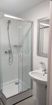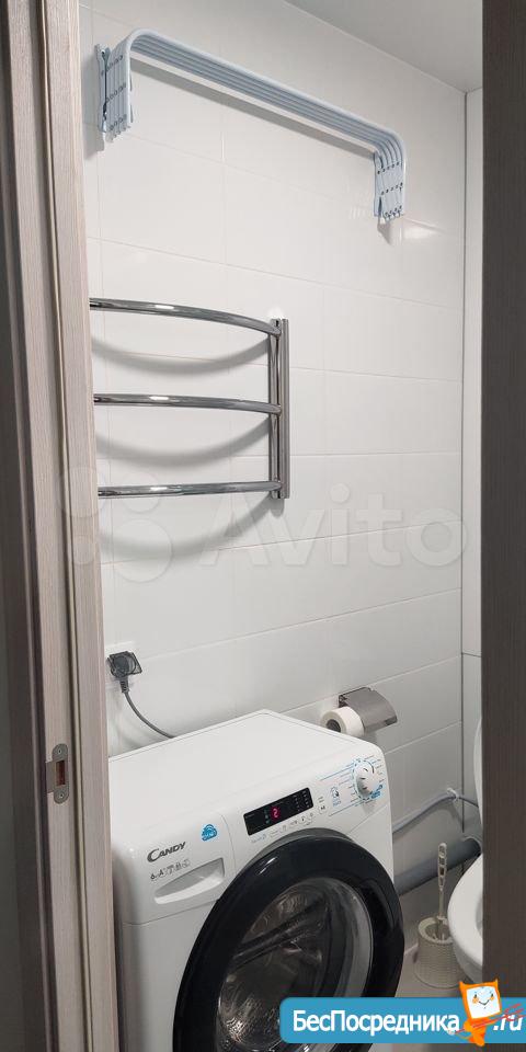 — Cанузел с душевой кабиной, выдвижная сушилка для белья, электрический полотенцесушитель