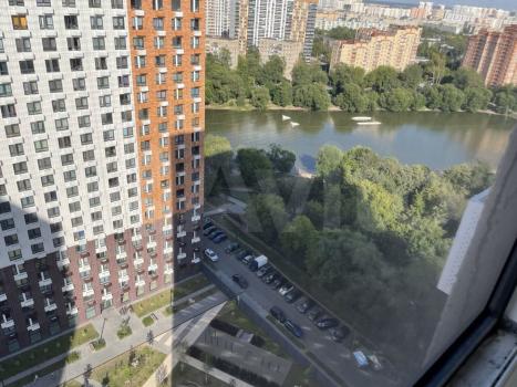 Квартира расположена в новом доме с закрытой дворовой территорией прямо у входа в Наташинский парк. Вид с окон на пруды и одно окно на центр Москвы.