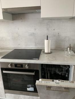 На кухне: индукционная плита, духовой шкаф , микроволновая печь, большой двухкамерный холодильник, термопот, стирально-сушильная машина, посудомоечная машина.