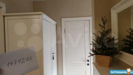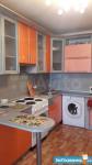 В коридоре большой шкаф-купе, в комнате раскладывающийся диван с прикроватной тумбочкой, стенка. В просторной кухне кухонный гарнитур с барной стойкой, электроплита, стиральная машинка, холодильник, угловой диван.