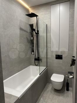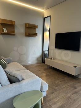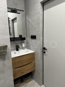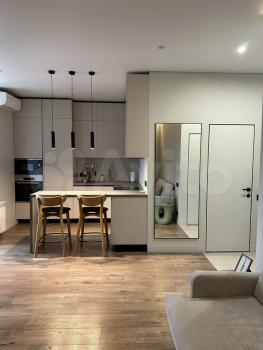 В квартире выполнен дизайнерский ремонт, что придаёт ей современный и стильный вид. В наличии вся необходимая мебель как на кухне, так и в комнате. Здесь есть всё, что нужно для комфортного проживания: кондиционер, холодильник, посудомоечная машина, телевизор и стиральная машина. Санузел совмещенный, оборудован душевой кабиной.