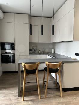 Современная кухня от ведущих брендов со всей необходимой техникой (плита, духовой шкаф, вытяжка, купалка, кофемашина и т.д.).