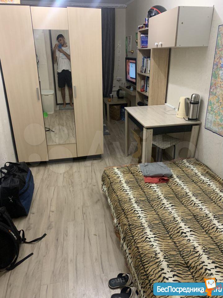 Сдаётся комната в коммуналке комната 22 квадратных метра чистая есть кровать холодильник приборы микроволновка чайник стиралка. Соседи хорошие не пьющие. Есть шкаф большой в комнате.