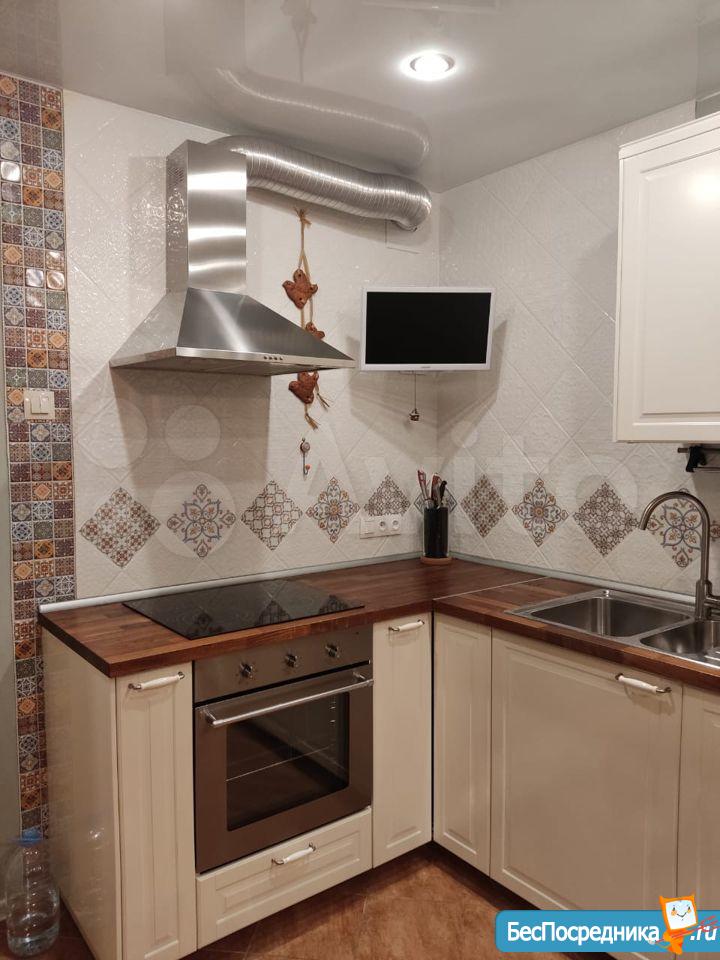 Кухня-гостиная: гарнитур из массива с механизмами Вlum, техника и посудомойка Воsсh, sidе-by-sidе холодильник, микроволновка, каменная столешница, светодиодная подсветка, система обратного осмоса Аtоll (отсутствие накипи и чистейшая питьевая вода, фильтры с арендатора), система от протечки воды, кондиционер, диван, стол, стулья.