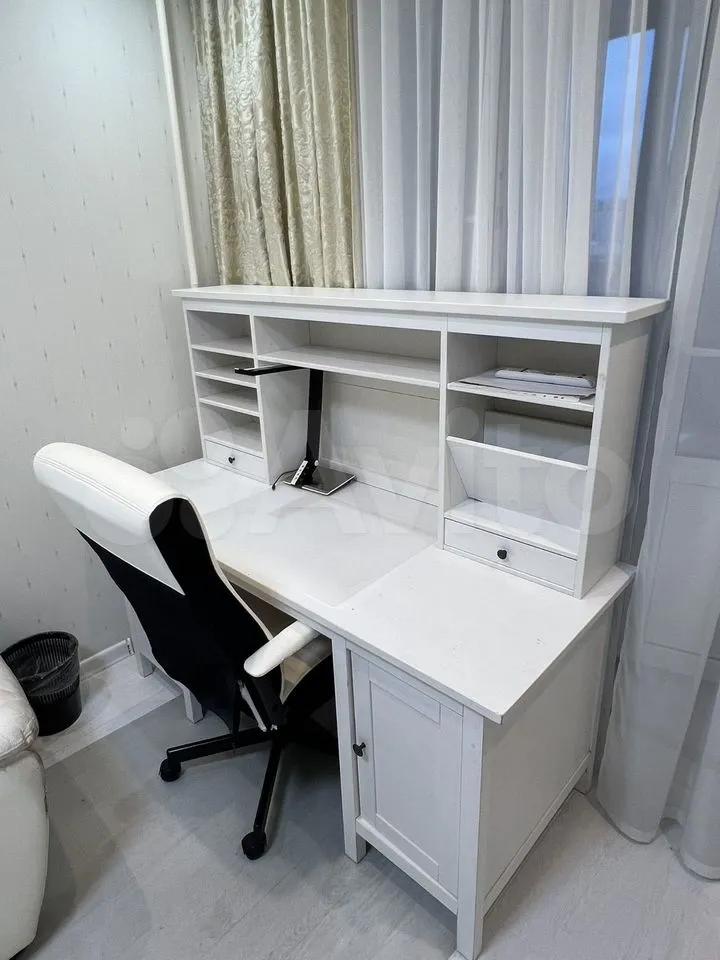 Кабинет: кожаный диван, стол для работы, полный набор мебели, полноценный балкон.