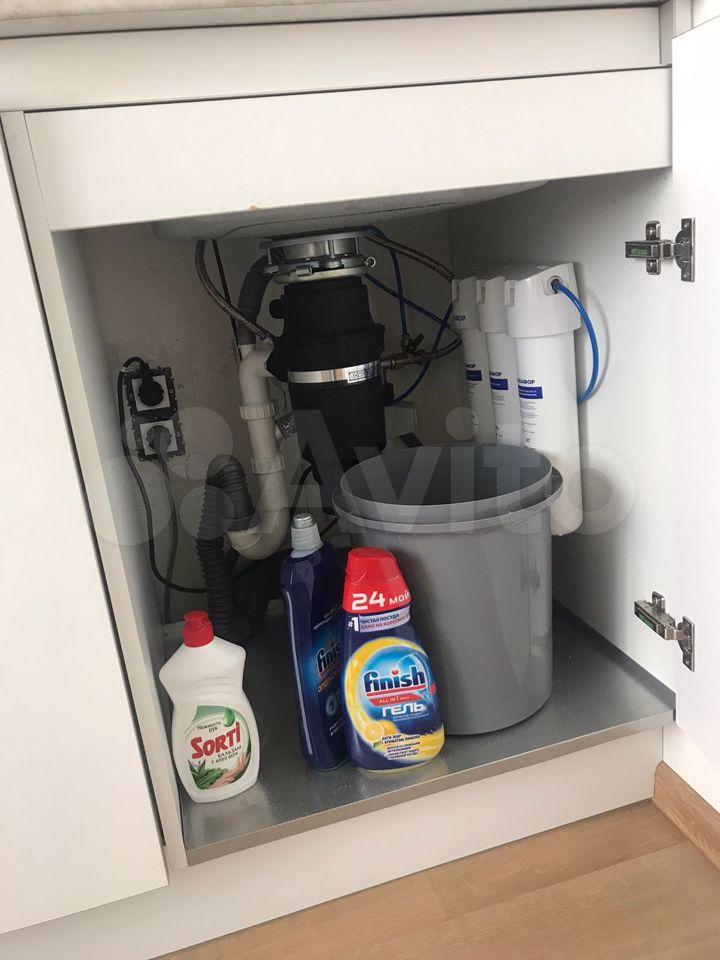 Эта кухня создана для удобства: здесь есть фильтр для воды, посудомоечная машина, стиральная машина, духовой шкаф, варочная панель и микроволновка. Также на кухне находится раскладной диван, который превращается в дополнительное спальное место. А с телевизором и видом на двор каждый завтрак будет приятным!