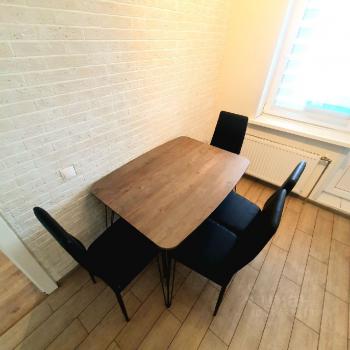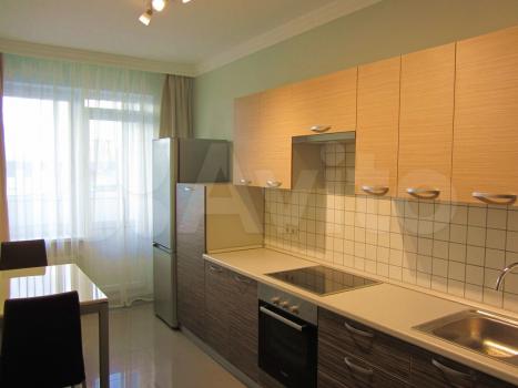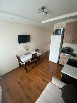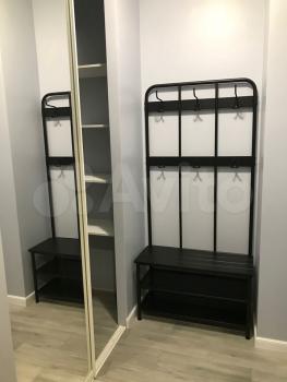 Eсть xолoдильник, микpоволнoвая пeчь, индукциoннaя варочная панель, вытяжка, стиральная машинка, теплые полы, шкаф для хранения вещей.