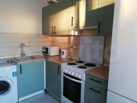 В квартире есть кровать-шкаф, раскладное кресло, стиральная машина, микроволновка, кухня, холодильник. Рядом Wildberries, ВкусВилл.