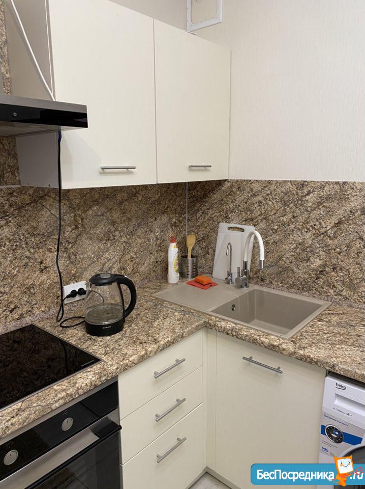 Квартира сдается с мебелью ( раскладной диван, шкаф, встроенная кухня, прихожая) и техникой (посудомоечная машина, стиральная машина, холодильник, чайник, индукционная плита, утюг, мультиварка).