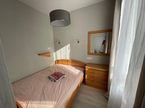 Отдельная спальная комната с двухспальной кроватью и ортопедическим матрасом. Большая вместительная гардеробная с удобной системой хранения, также при входе установлен большой шкаф для одежды. Совмещенный с/у. Квартира оборудована кондиционером.
