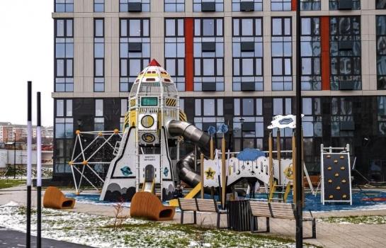 На территории комплекса: Детский сад, школа, детские и спортивные площадки, беговые и велосипедные дорожки, торговые точки на первых этажах (Магнит, Дикси, К&Б).