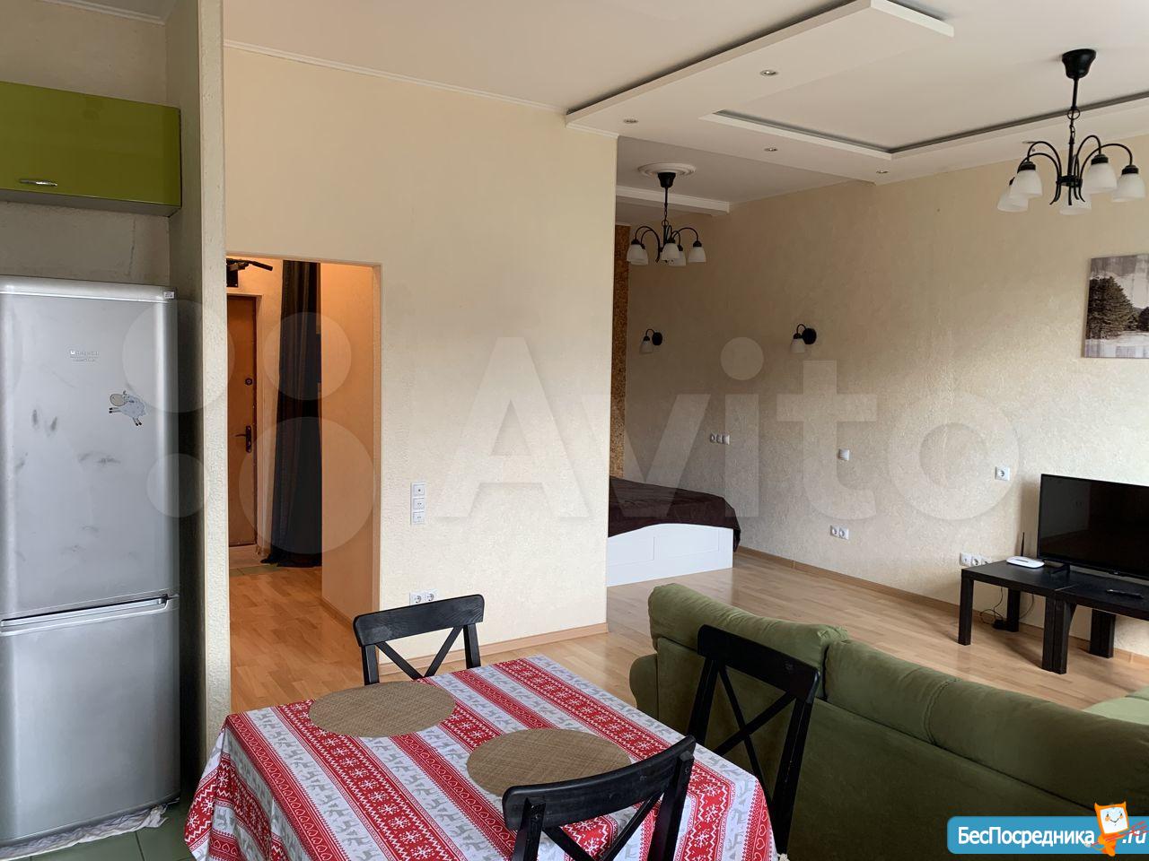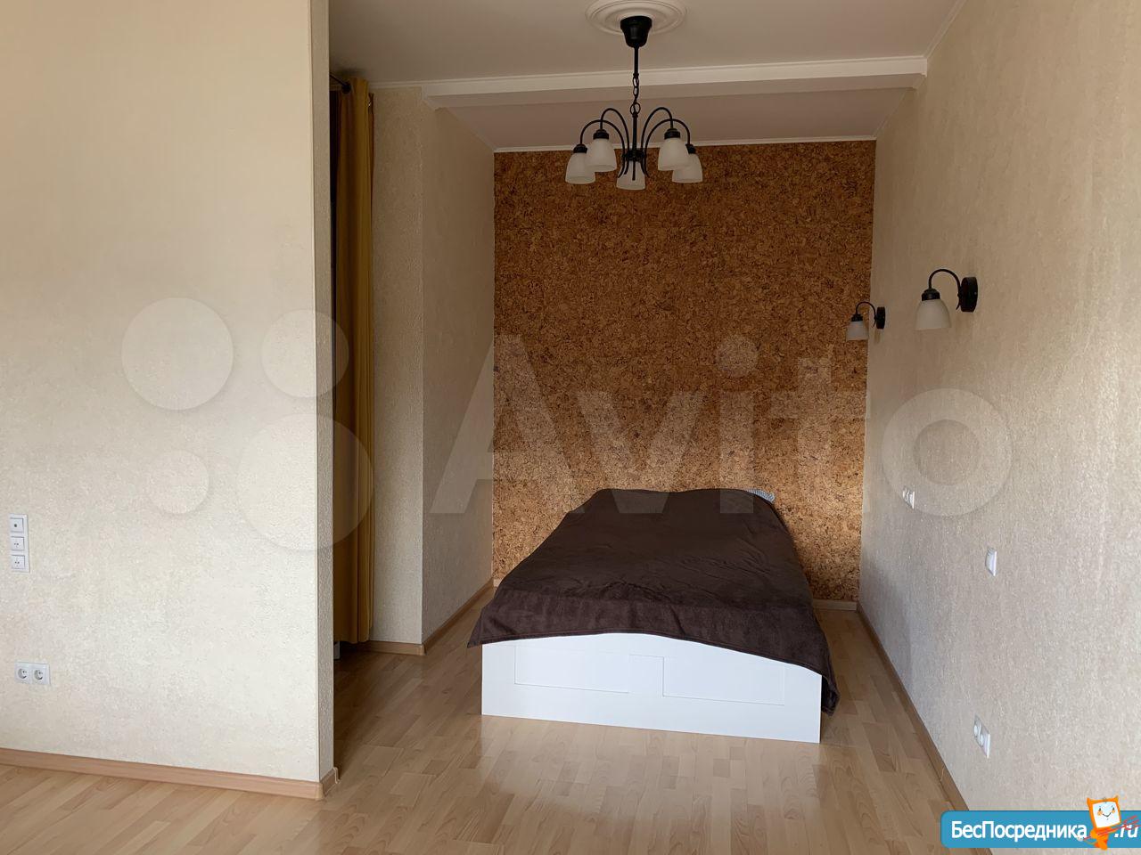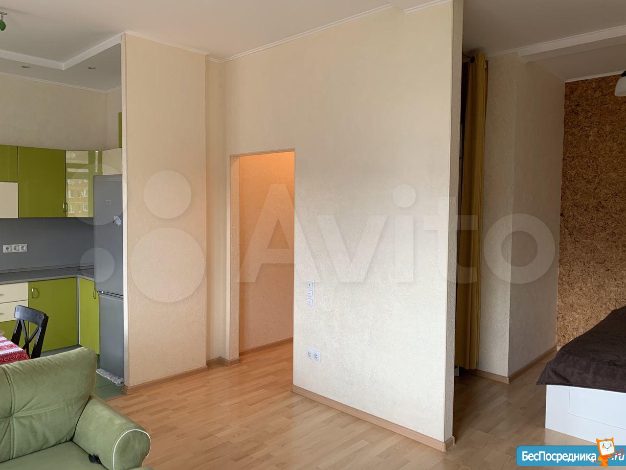 1-но комнатная квартира, переделанная в студию! Кухня со встроенной бытовой техникой, отдельно - спальня. Квартира полностью укомплектована мебелью и техникой, заезжай и живи.