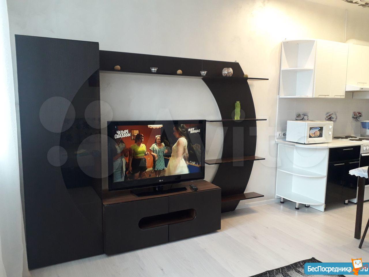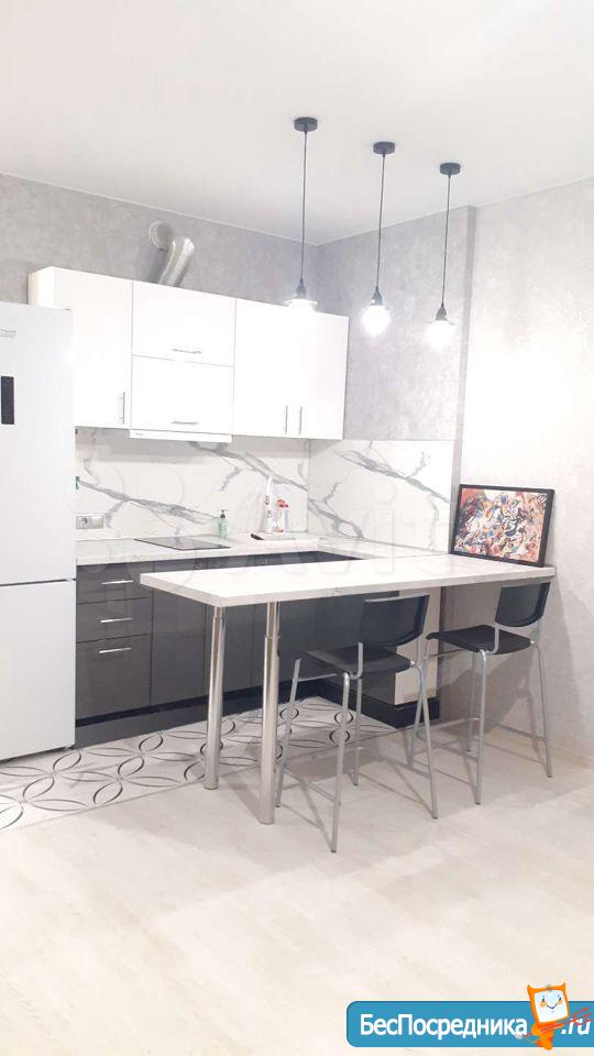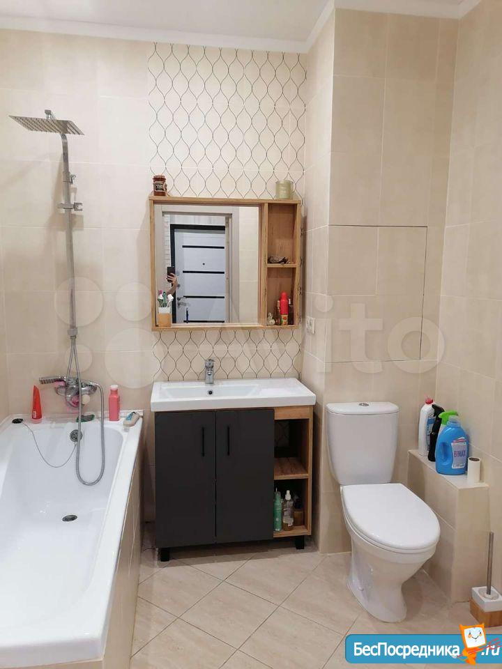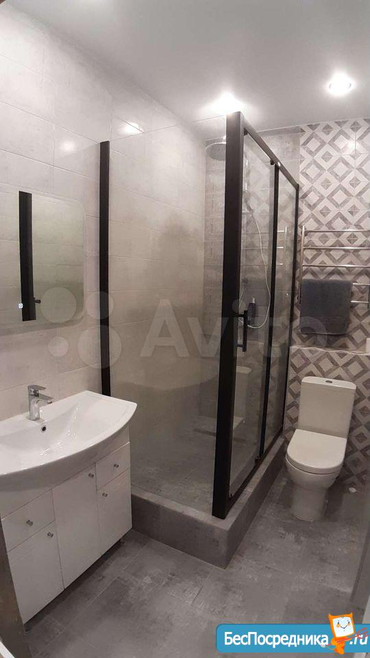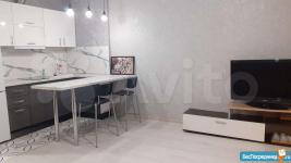 С 11 сентября сдается студия 37 м² с большой застеклённой лоджией. Сделан супер качественный ремонт, европейский дизайн. В квартире вся необходимая мебель и бытовая техника, установлен кондиционер. В комнате диван с ортопедическим матросом Аскона, ТВ, интернет. На кухне холодильник, варочная панель, вытяжка.