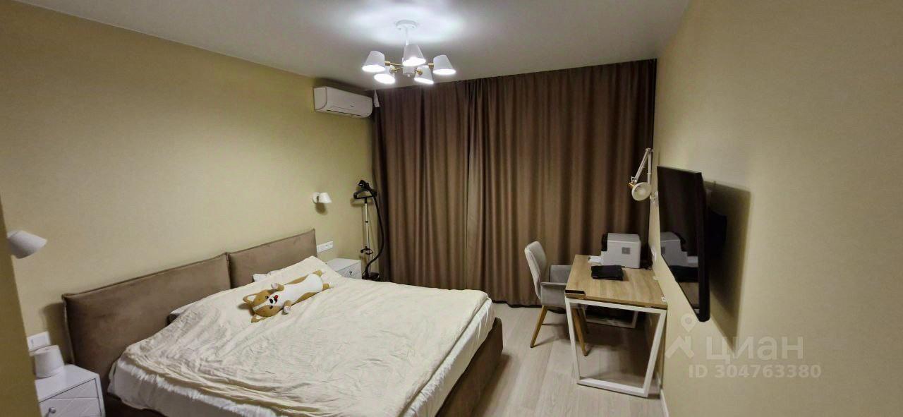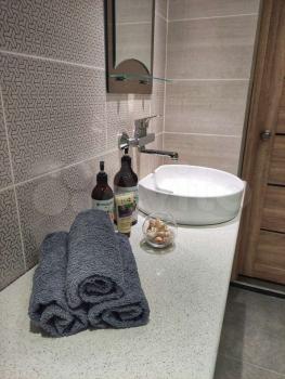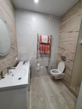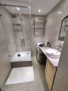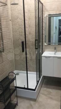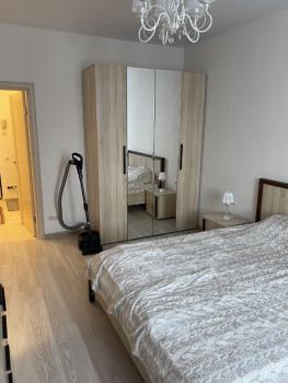 В квартире выполнен качественный ремонт. Установлены теплые полы (коридор, ванна, кухня). Помещение кухни и комнаты оборудованы кондиционерами. Полы: без порогов плитка и ламинат, стены выведены в ноль и окрашены, потолки натяжные. Рулонные шторы с полным затемнение. Качественная электрика и сантехника, установлена система от протечек. В квартире посудомоечная машина, стиральная машина, видеодомофон, ТВ, WIFI, кухонная вытяжка, холодильник, система хранения под ключ, посуда и столовые приборы.