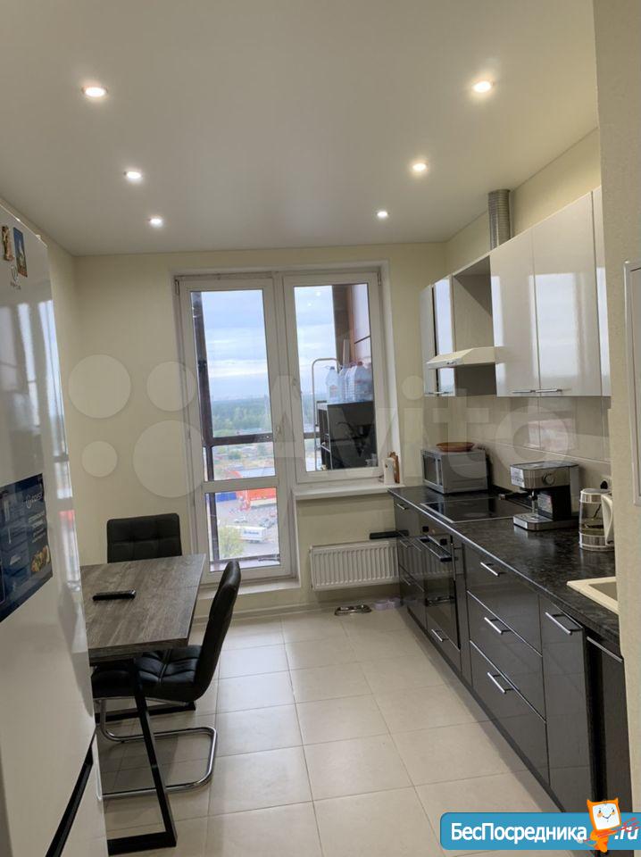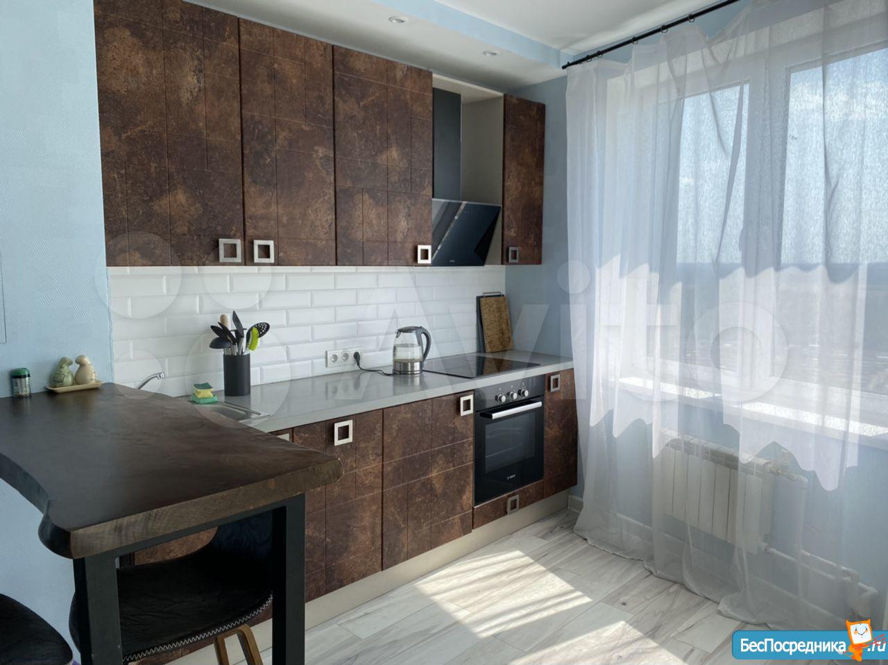 В квартире выполнен свежий евро ремонт. Комната светлая и уютная, с качественным ламинатом на полу. Из мебели имеется,обеденный стол и стулья. Кухня оборудована современной встроенной техникой, включая холодильник, плиту и микроволновую печь.