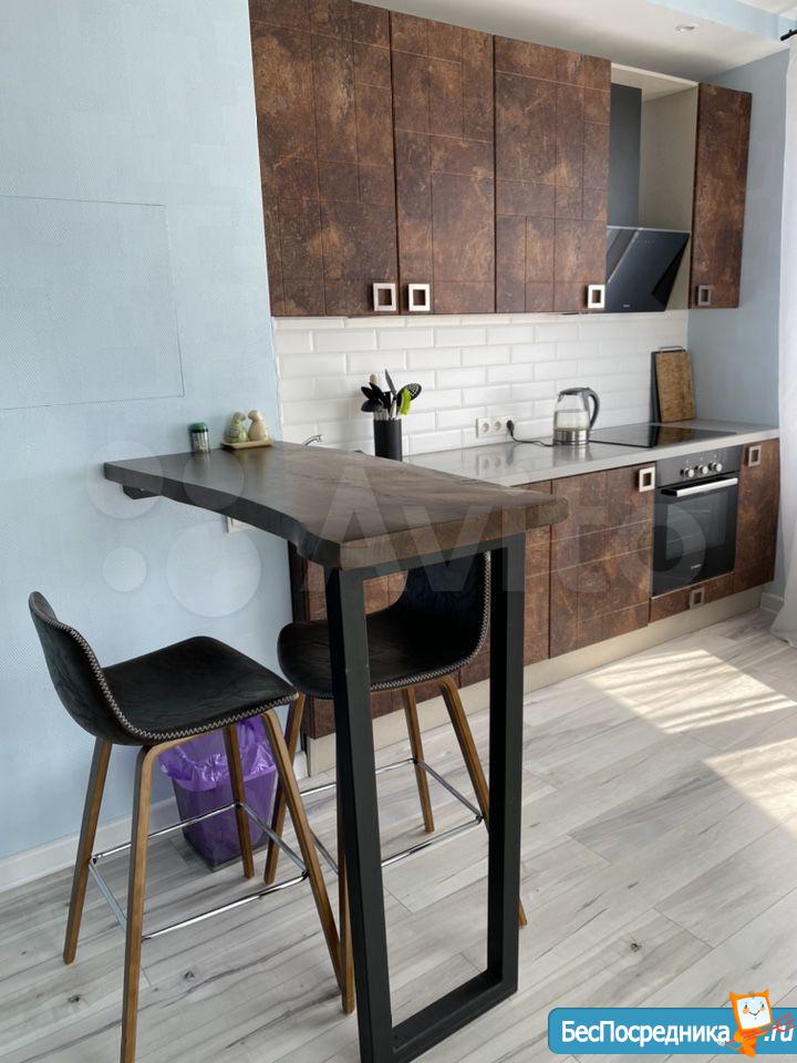 С ремонтом, в новом доме, с дизайнерской планировкой. На балконе панорамное остекление, можно использовать балкон, как ещё одну комнату. Квартира светлая, тёплая. На балконе и в ванной полы с подогревом. Ремонт в скандинавском стиле, на полу ламинат. В комнате есть двухспальная кровать, рабочий стол со стулом, тумба для документов, стелаж для хранения, двухстворчатый шкаф, низкий столик и тумбочка для мелочей. На кухне раковина, плита, вытяжка, встроенные стиральная и посудомоечная машины, барная стойка с двумя стульями, стелаж для хранения и подвесные шкафы для посуды. Необходимая посуда, фужеры, столовые приборы есть. Также гладильная доска, сушилка для одежды, утюг, электрический чайник, тостер, кастрюли, сковородки, подушки с одеялом, пледы. В коридоре двухстворчатый зеркальный шкаф с полками для обуви и банкетка. В ванной душевая зона, раковина с подвесной тумбой, унитаз. Можно с детьми и животными при условии, что квартира не пострадает.) Договор обязателен.