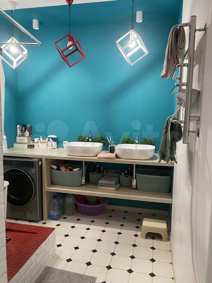 Санузел раздельный, оформлен в стильной плитке. В ванной комнате установлена ванна и стиральная машина. В прихожей предусмотрены удобные полки для хранения вещей.