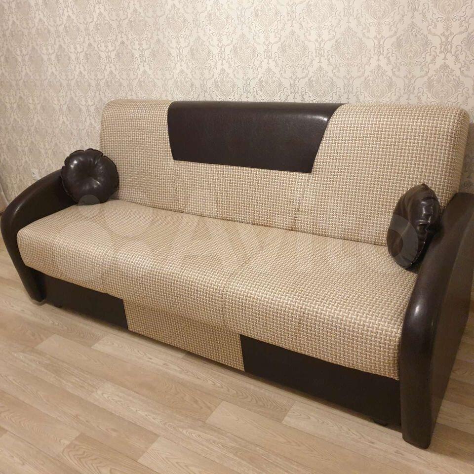 В комнате находится ёмкая стенка, компьютерный стол, уютные хрустальные бра и люстра, и новый диван-кровать лучшего российского производителя PUSHE с ортопедическим матрасом и спальным местом 160х200. Анатомические свойства матраса обеспечивают качественный сон и избавляют от проблем со спиной.