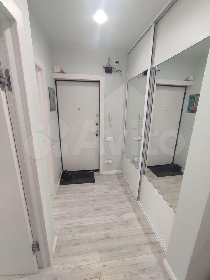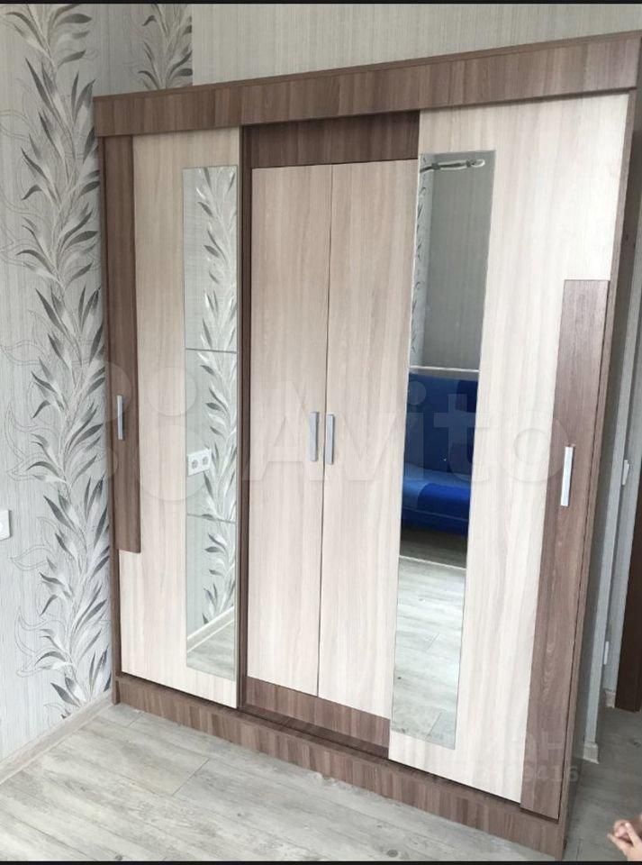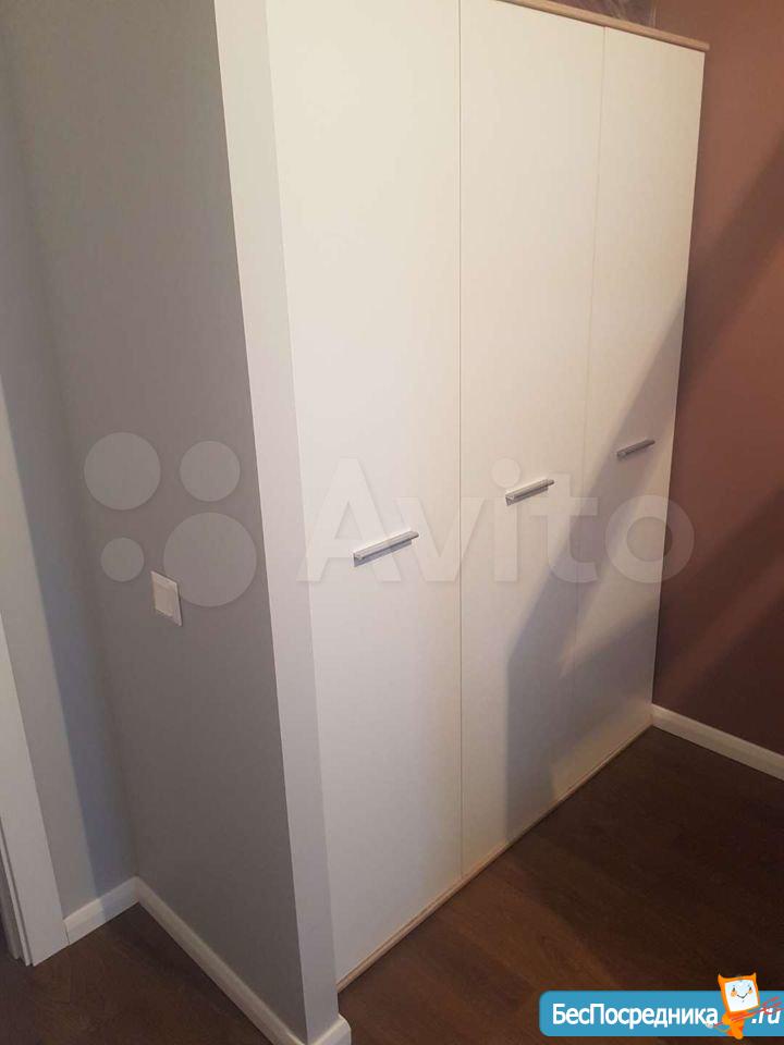 В коридоре установлен огромный, вместительный шкаф-купе с зеркалами, глубокий, высота до потолка.
