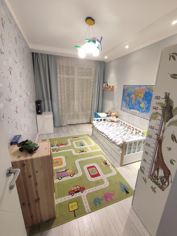 Квартира идеально подходит для семьи с ребенком или детьми. Одна комната полноценная детская, со шкафом, и большим колличеством мест для хранения игрушек. Есть возможность оставить кровать как на фото, она лет до 9-10 вполне подойдёт, также для неё можно установить передний бортик если на ребенка помладше. Если старше 10 лет, то можем поменять на кровать побольше, тоже красивую и хорошую. И один взрослый поместится. На всех окнах установлены решетки до середины окна, дети будут в безопасности. Стол и стульчик растущие, с регулировками, малыши могут за ними лепить, рисовать, а для школьников это полноценная парта. На кухне можем оставить отличный удобный растущий стул. И кстати во всём ЖК дворы без машин! Буквально через дом недавно открылась новая школа с большим классным стадионом, в ближайшее время достроят и сдадут и детский садик.