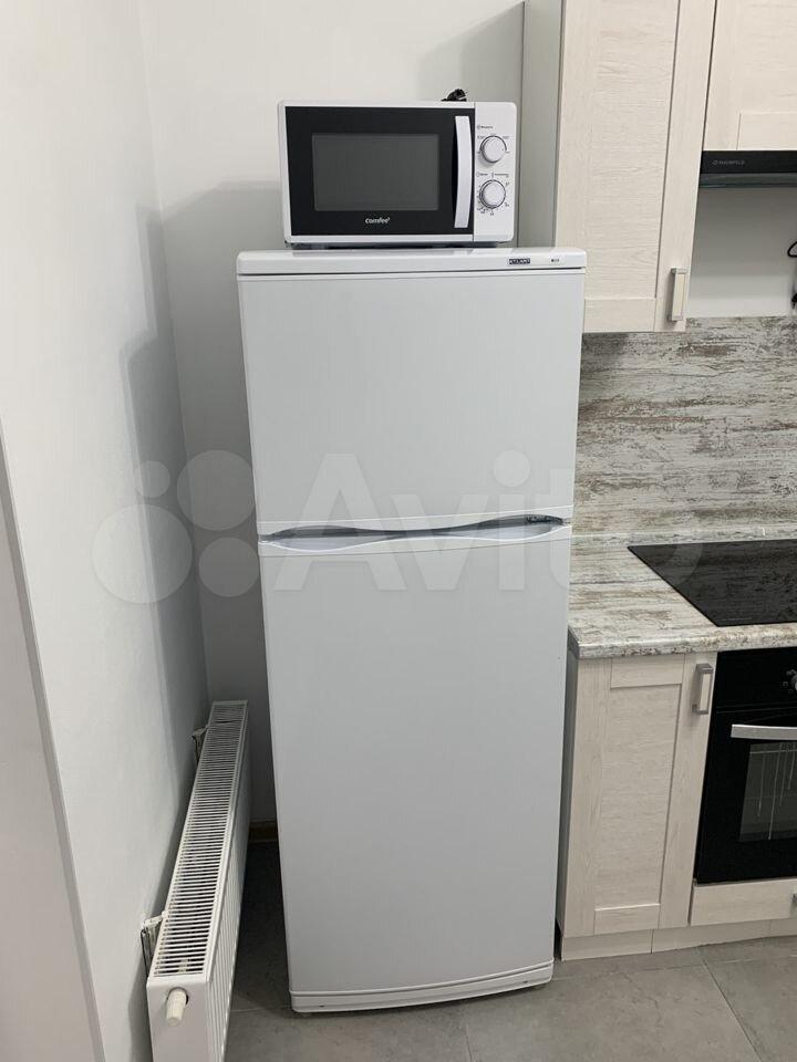 холодильник, плита, микроволновка, стиральная машина, телевизор.