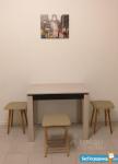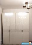 Кухонный гарнитур и мебель IKEA: трехстворчатый шкаф в комнате, двуспальная кровать, рабочий стол, кухонный стол, комод, полуоткрытый шкаф-пенал, полка под телевизор.