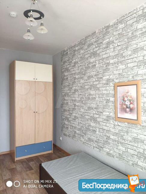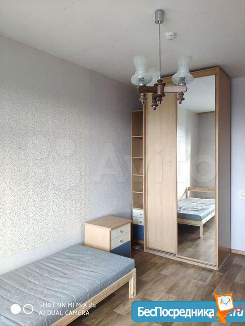 Квартира с мебелью и бытовой техникой (холодильник, электроплита, стиральная машина, СВЧ). Спальные места: 2 односпальные кровати. Одна комната без мебели.