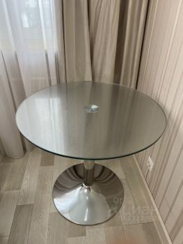 - круглый стеклянный столик
