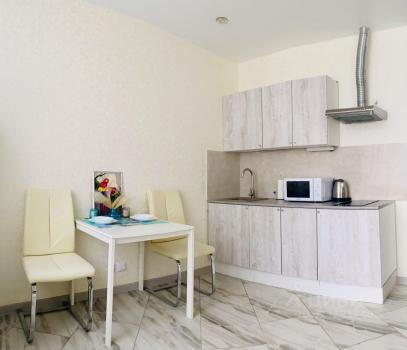 В квартире современный ремонт, заранее продумывали всё расположение мебели и техники, для комфортного проживания одного-двух человек.