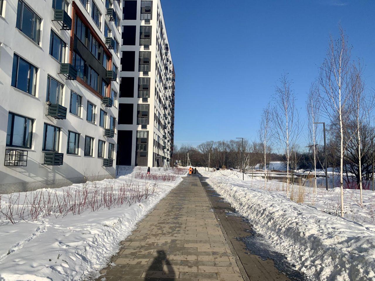 Напротив окон квартиры нет других зданий - вы не будете смотреть на соседей; внизу - пешеходная ландшафтная зона.