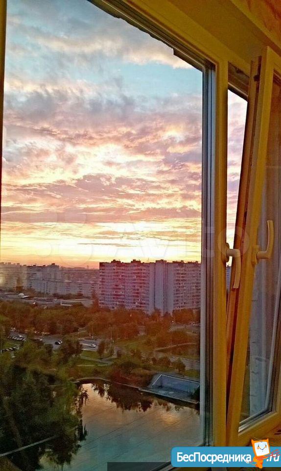 Комната с хорошим ремонтом, как и вся квартира (диван, 2 шкафа, комод), вид из окна на пруд, рядом множество продуктовых магазинов ( пятёрочка, Билла, перекресток, спар), банков (Сбербанк, ВТБ и тд), парк 850-летия Москвы с набережной Москва-реки)