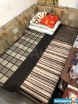 На нижнем этаже раскладной диван, общая вместимость - 3 взрослых человека.