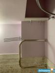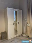 При входе установлен большой платяной зеркальный шкаф, имеется сушилка для белья, гладильная доска.