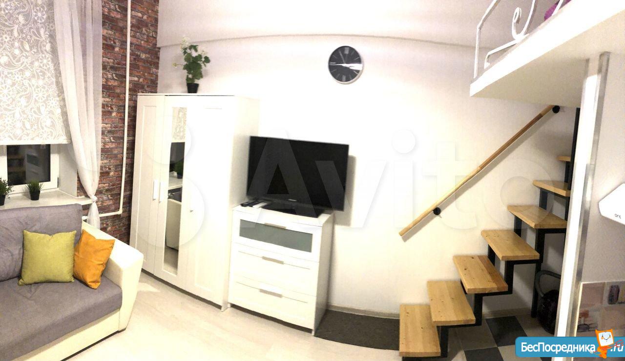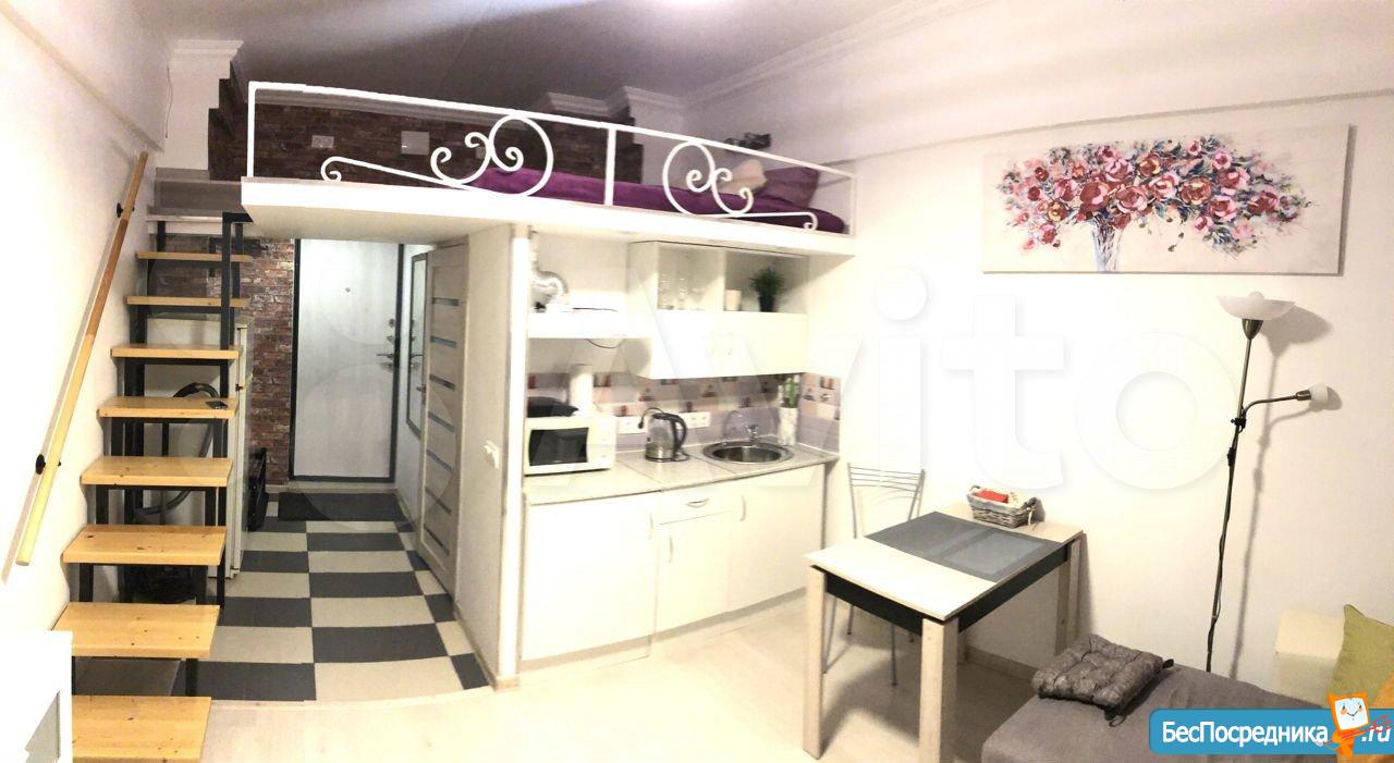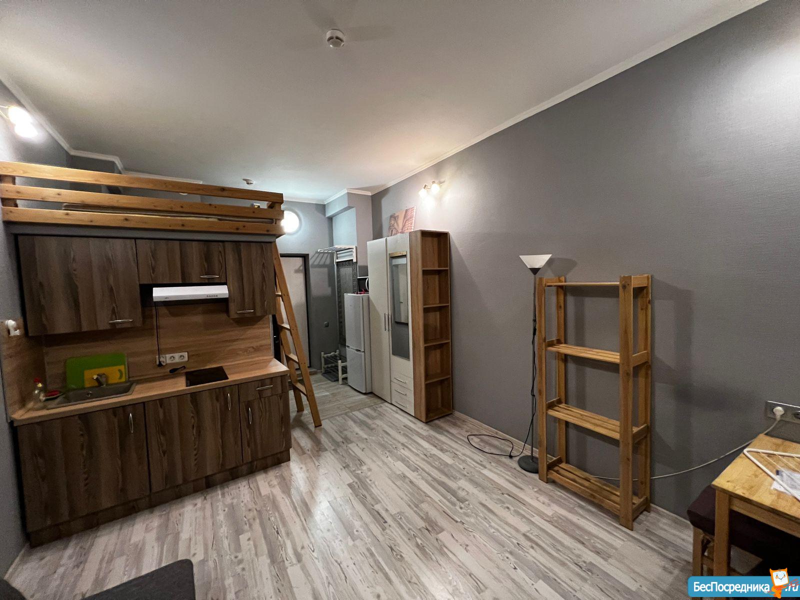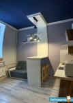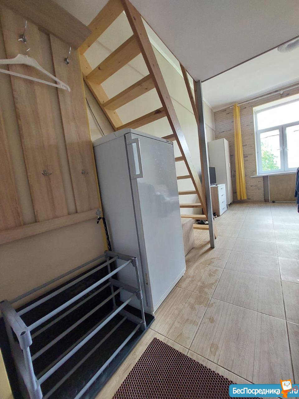 Сдаются впервые, сделан качественный ремонт (установлена дополнительная звукоизоляция стен). 19 м² + антресоль с дополнительным пространством для хранения. Высота потолков 3,2 м.