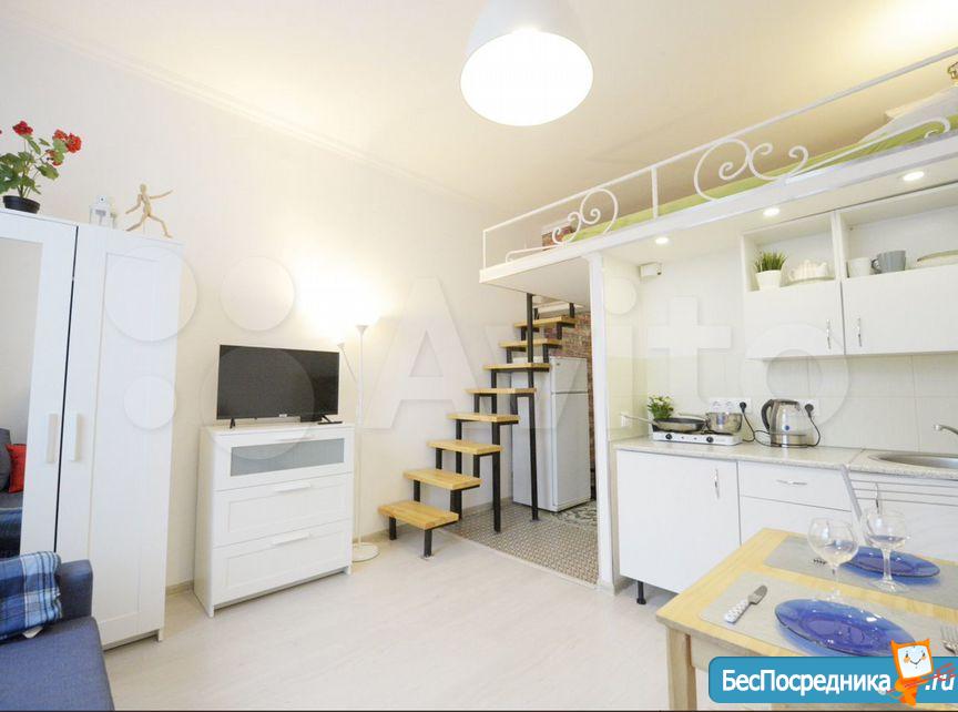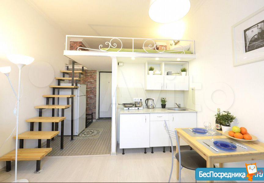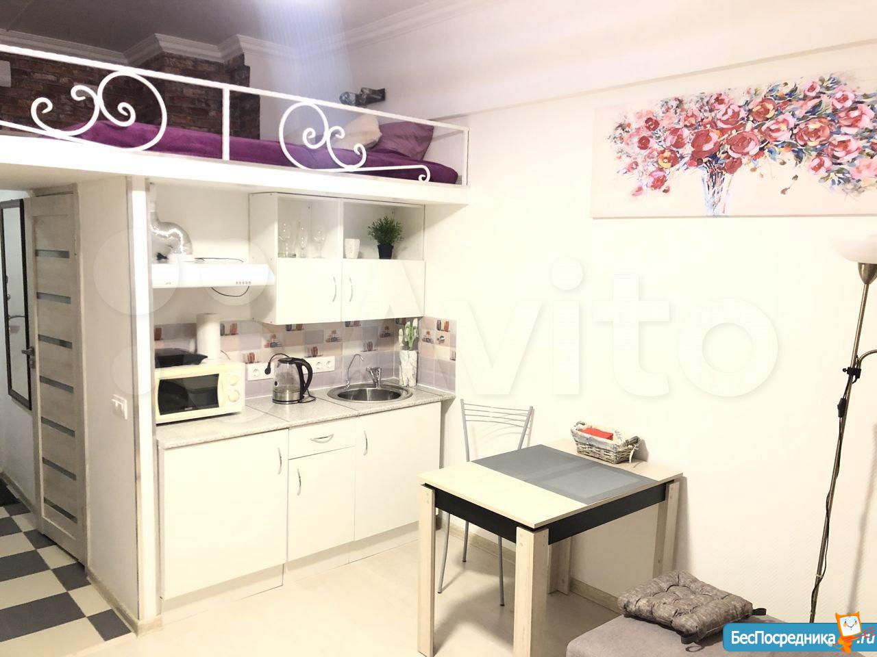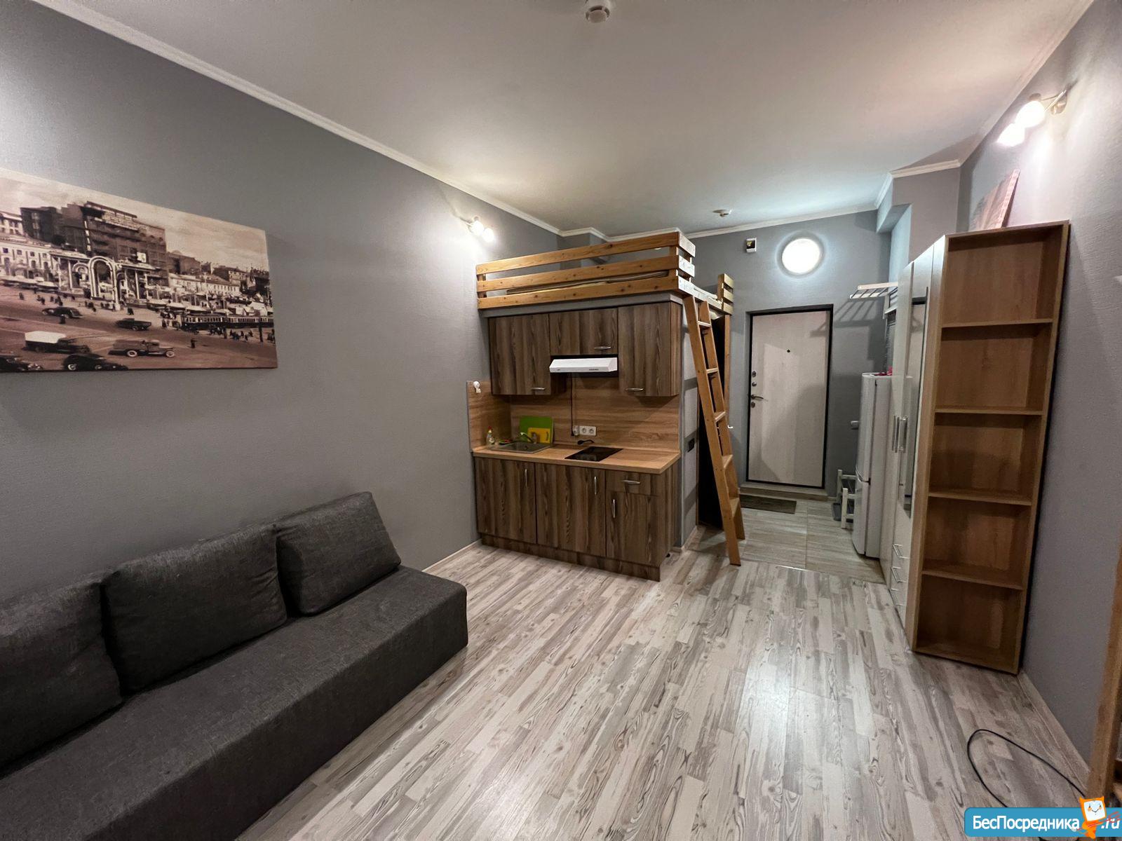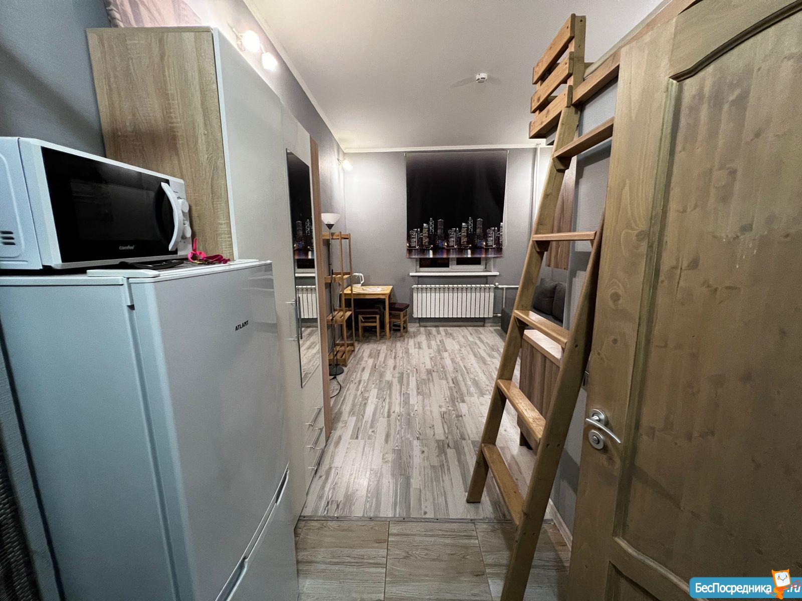 Сдаются впервые, сделан качественный ремонт (установлена дополнительная звукоизоляция стен). 19 м² + антресоль с дополнительным пространством для хранения. Высота потолков 3,2 м.