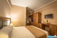 На втором уровне комфортная двухспальная кровать и место для хранения вещей.
