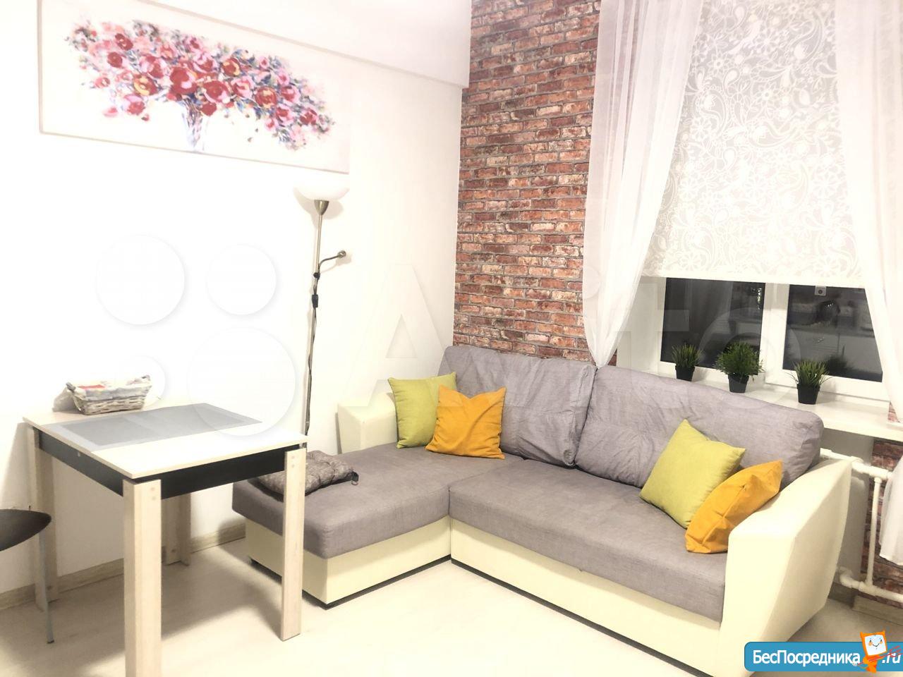 Красивый, стильный ремонт в стиле лофт, все новое: кухня, с/у, душевая, 2 полноценных спальных места для 4 человек – диван и кровать, телевизор, холодильник, стиральная машина.